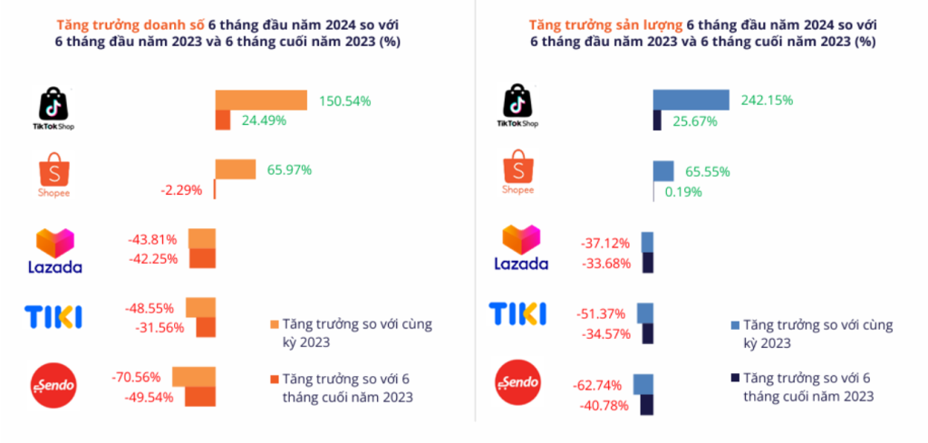 Tăng trưởng doanh số và sản lượng các sàn thương mại điện tử trong quý III/2024